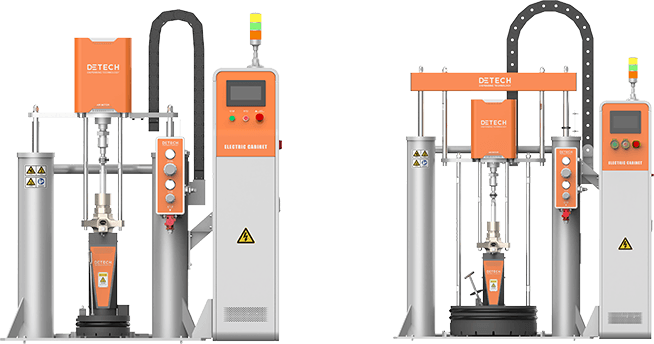 DC Heating系列壓盤泵在DC系列壓盤泵基礎上增加了加熱功能,可處理需高溫施工(204℃最高)的應用場景,如丁基熱熔膠,壓敏膠等。多應用于EV動力電池密封、白車身密封等。