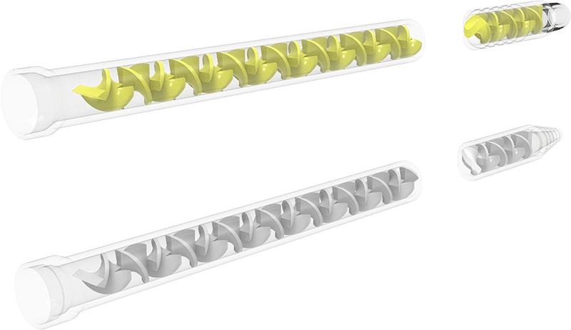 M系列靜態混合管是一種專門設計用于雙組分材料高效混合的裝置。與動態混合不同,靜態混合管不依賴于任何移動部件,而是通過一系列固定的內部元件來實現材料的均勻混合。這種設計不僅簡化了設備結構,還減少了維護需求,并能在無需電力的情況下完成混合過程。
